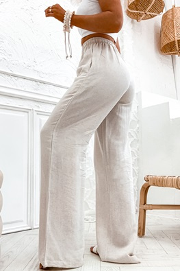 MOON SPODNIE DAMSKIE LNIANE VE48B - BEŻOWY