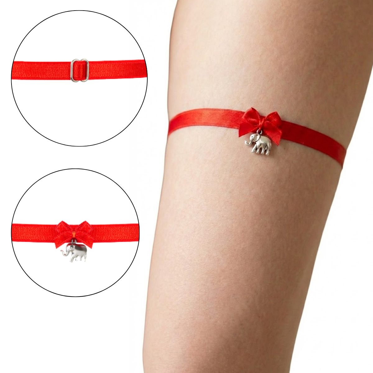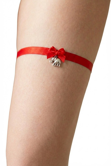 Prosta, czerwona podwiązka, ozdobiona drobną kokardką oraz zawieszką słonika. To ukłon w stronę studniówkowej tradycji, ale też wyjątkowo urokliwy i romantyczny dodatek do wieczorowej kreacji. Podwiązka z możliwością regulacji doskonale dopasowuje się do każdego rozmiaru uda, zapewniając pełen komfort noszenia.