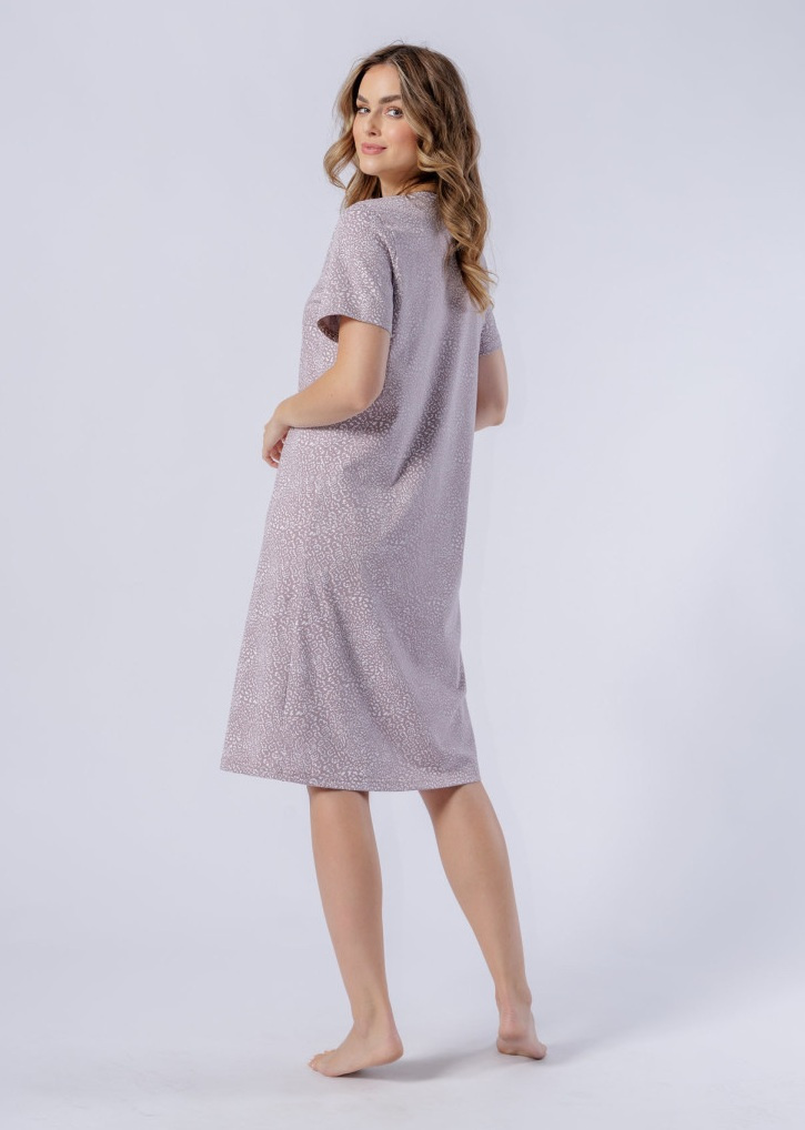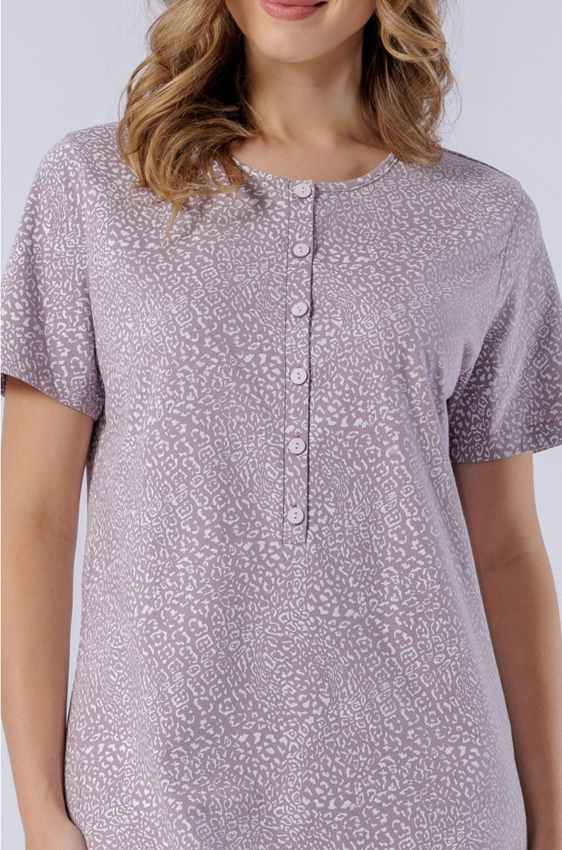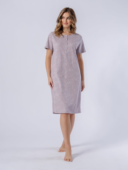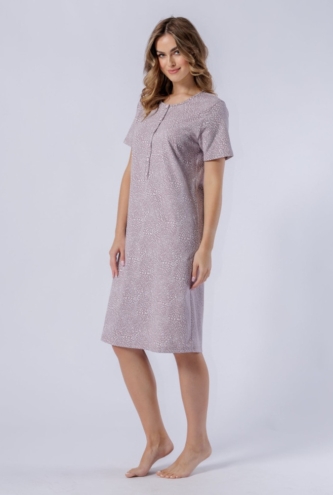 Koszula nocna Leveza 1548 Lidia to idealne połączenie komfortu i klasycznego stylu. Wykonana z delikatnej, oddychającej bawełny, zapewnia miękkość i przewiewność przez cały rok. Luźny fason oraz długość do kolan gwarantują wygodę i swobodę ruchów. Dekolt zapinany na guziki ułatwia zakładanie i sprawdzi się również dla mam karmiących. Krótki rękaw sprawia, że koszula jest doskonałym wyborem na cieplejsze noce.
