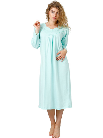 Koszula damska Zyta 213 to produkt od renomowanego polskiego producenta, który zapewnia wysoką jakość i komfort noszenia. Dzięki dostępności w wielu modnych kolorach oraz szerokiej ofercie rozmiarów, w tym także większych, każda kobieta znajdzie coś dla siebie. Rękaw 3/4 i subtelny haft przy dekolcie i marszczenie nadają jej elegancji i szyku. Materiał o wysokiej jakości sprawia, że koszula jest wyjątkowo miła w dotyku, a jej długość sięgająca za kolano zapewnia wygodę. Klasyczny krój sprawia, że koszula pasuje do każdego typu sylwetki, gwarantując komfort i pewność siebie przez całą noc.