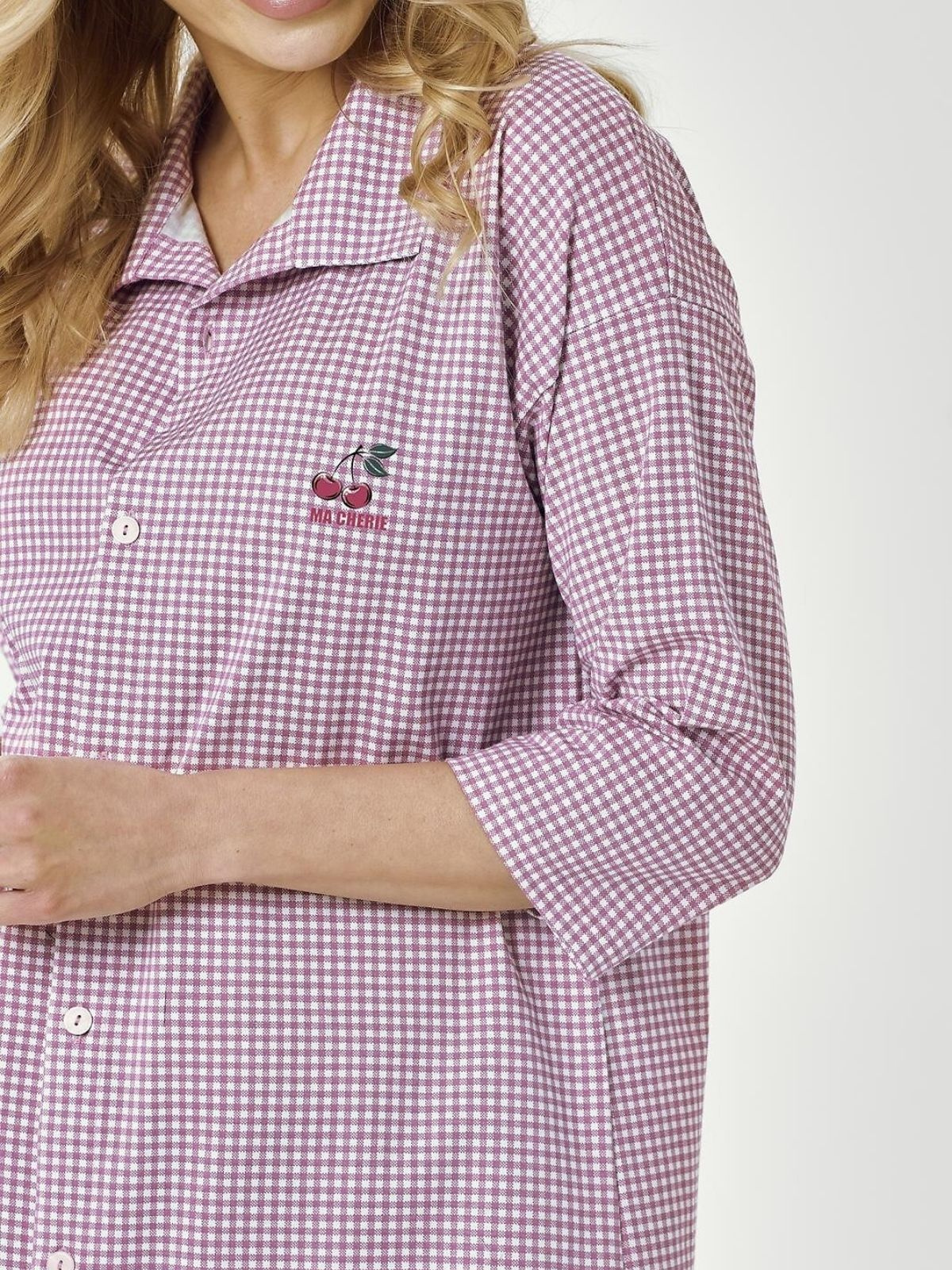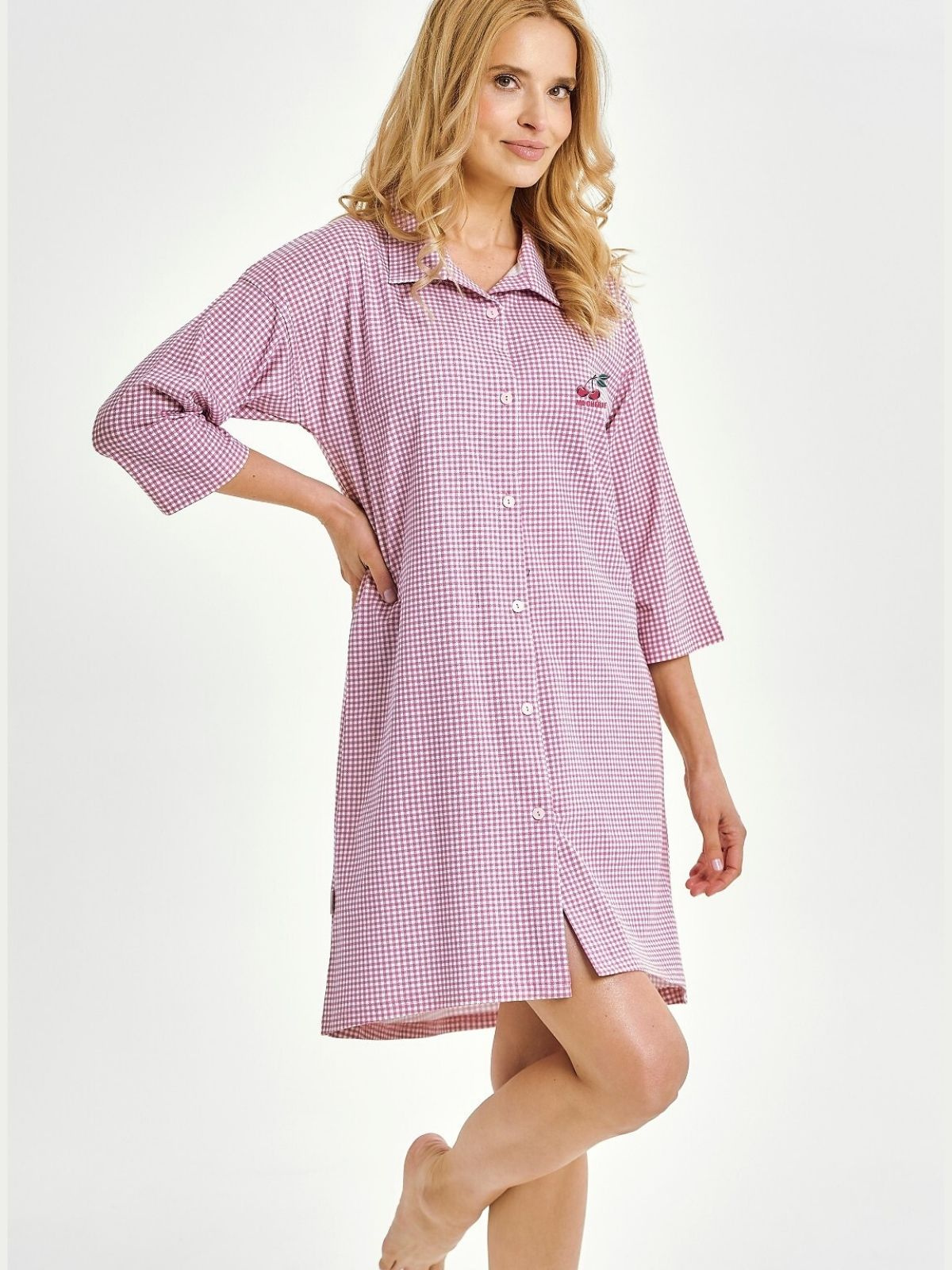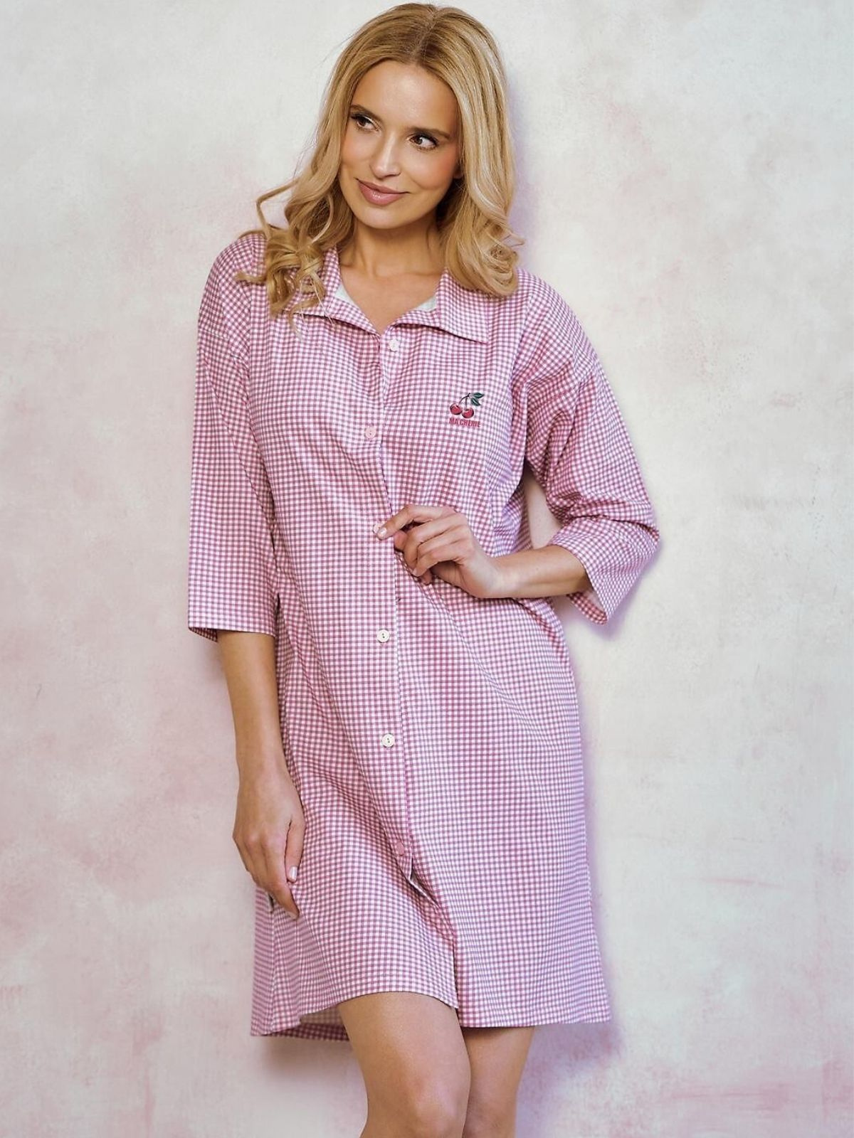 Elegancka i wygodna koszula damska wykonana z wysokiej jakości bawełny w klasyczną kratkę. Model posiada kołnierzyk, rękaw 3/4 oraz praktyczne zapięcie na guziki. Na piersi umieszczono kolorowy print, który dodaje koszuli wyjątkowego charakteru, a długość przed kolano zapewnia komfort i swobodę ruchów. Koszula pakowana jest w foliowy woreczek, co sprawia, że doskonale nadaje się również na prezent.