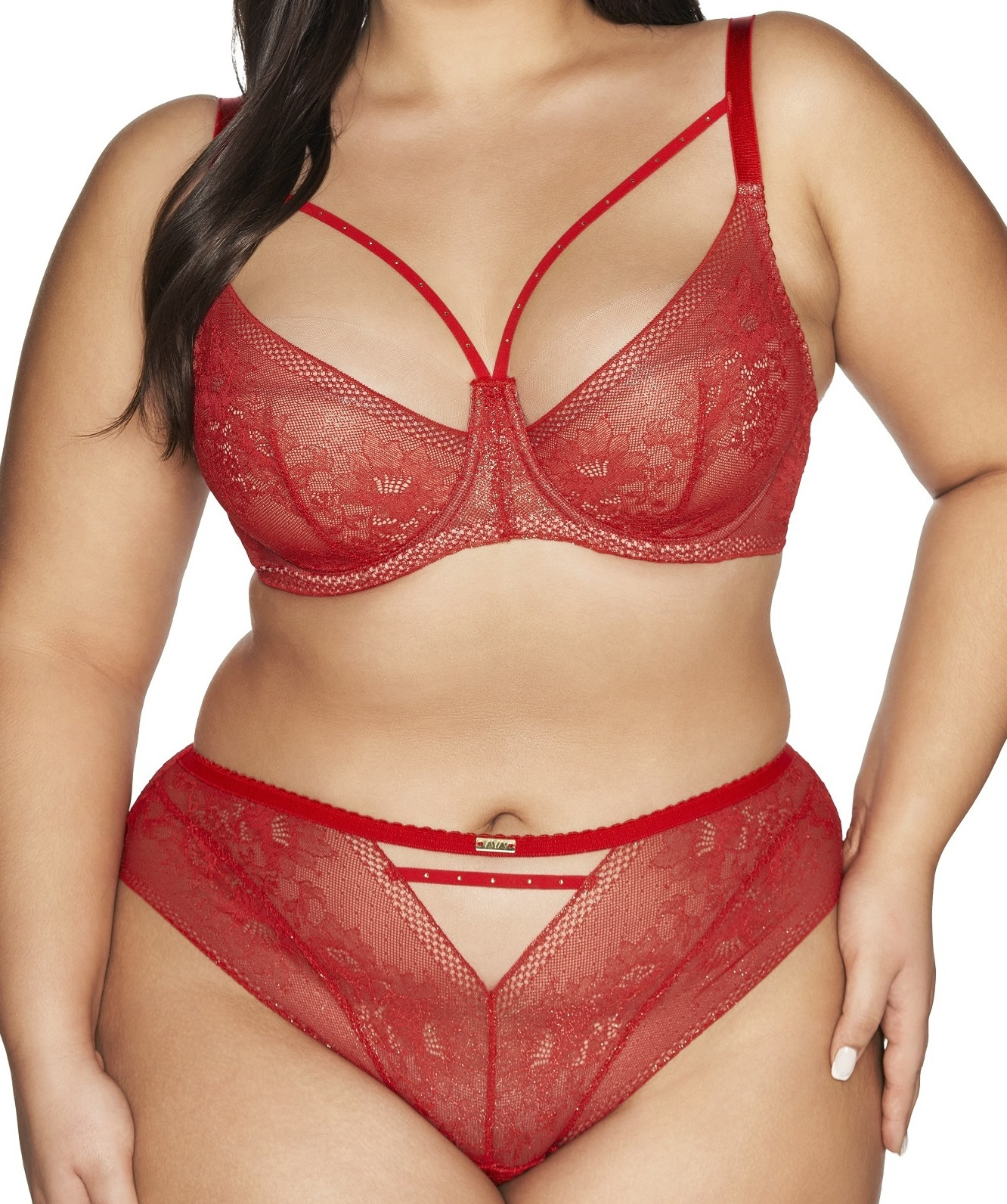 Elegancki i niezwykle zmysłowy semi-soft Crown wodzi na pokuszenie. Wykonany jest z miękkiej, beżowej pianki w dolnej części miseczek i transparentnego tiulu w górnej. Całość obszyta jest misternie tkaną czerwoną koronką, obsypaną złotym pyłem. Dodatkową ozdobą biustonosza są elastyczne paseczki wysadzane cyrkoniami zmysłowo okalające biust. Niezrównana konstrukcja K-1030 zastosowana w AV 2127 to gwarancja wygody i właściwej stabilizacji biustu, odciążającej plecy i ramiona.