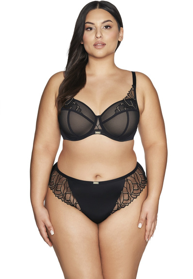 AV 2116 to iście królewska propozycja dla pań, które potrzebują stabilnego wsparcia. Miseczki typu full cup wyścielone delikatną dla ciała pianką nie tylko unoszą i stabilnie utrzymują biust w odpowiednim miejscu, ale także nadają im kuszący, pełny kształt. Czysta czerń ze świetlistym haftem o nieregularnej fakturze osadzona na cielistym beżu przyciąga wzrok klasyczną elegancją, a czarne taśmy przeszyć dodatkowo uwypuklają krągłość piersi. Poczuj się doceniona.