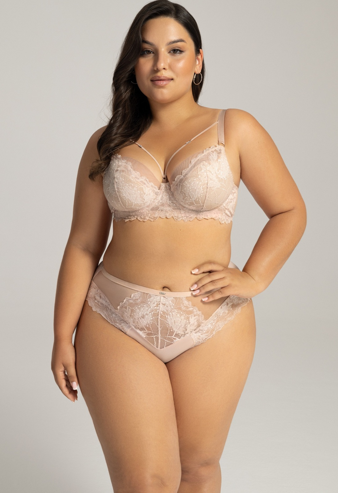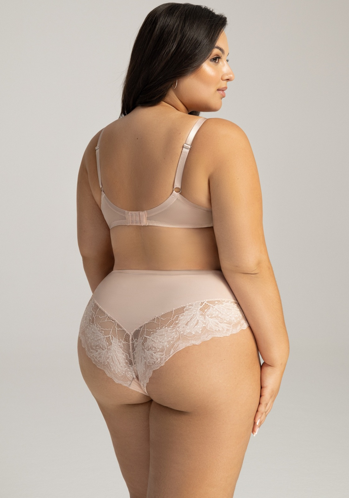 Figi damskie o klasycznym kroju, łączące komfort i zmysłowy design. Wykonane z delikatnej siateczki, kwiatowej koronki z subtelnym brokatowym połyskiem oraz gładkiej mikrofibry. W talii ozdobione płaską gumką ze stylową sprzączką z cyrkoniami, dodającą im wyjątkowego uroku. Idealne dla kobiet ceniących elegancję i wygodę na co dzień.
