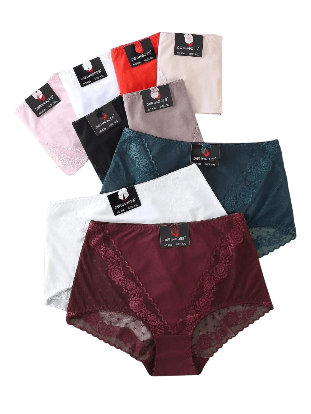 Wysokie majtki damskie zdobione na bokach oraz z tyłu koronką. Wykonane z przyjemnej dla ciała, naturalnej bawełny. Wygodna gumka w pasie dostosowuje się do ciała. Dzięki cieniutkiemu zakończeniu koronką w tylnej części, majtki nie odznaczają się pod obcisłą odzieżą.