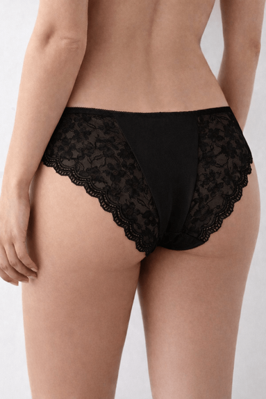 Kobiece figi damskie koronkowe wykonane z wysokiej jakości bawełny. Wykończone koronką o kwiatowym motywie. Klasyczny krój, który zapewnia komfort noszenia. Idealnie dopasowują się do kształtu sylwetki i przylegają do ciała.