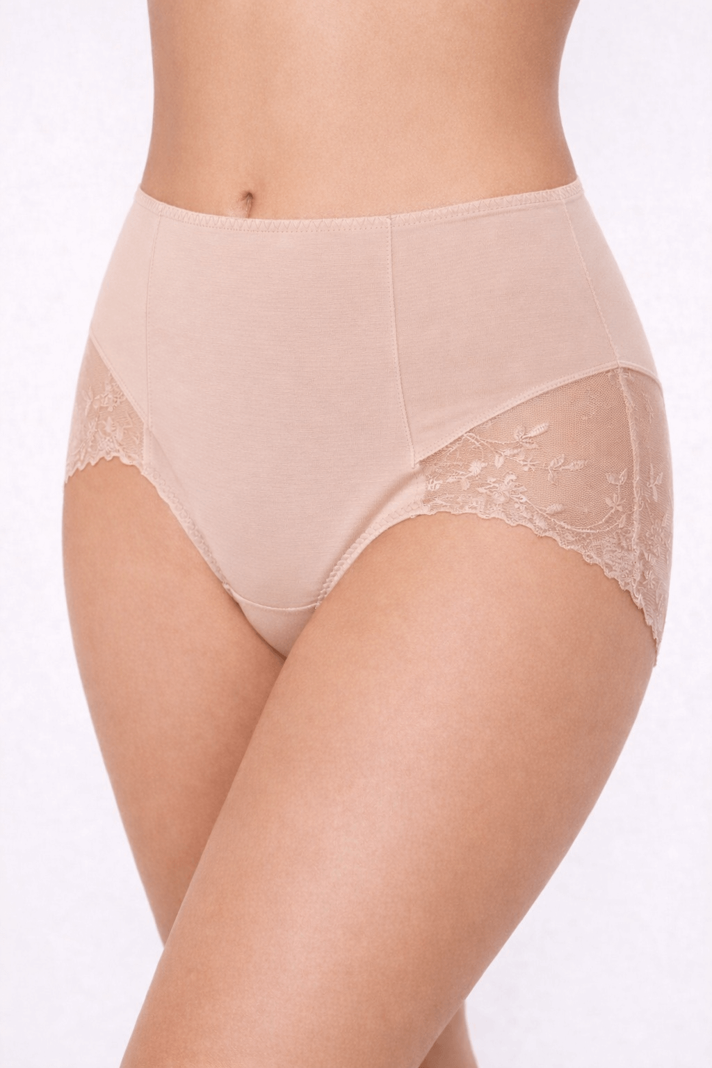 Piękne majtki wykonane z wysokogatunkowej wiskozy z wysokim stanem. Wykończone delikatnym tiulem o kwiatowym motywie. Figi nie odznaczają się pod ubraniem, dzięki bezszwowemu wykończeniu. Idealnie dopasowują się do kształtu ciała zapewniając wysoki komfort podczas noszenia.