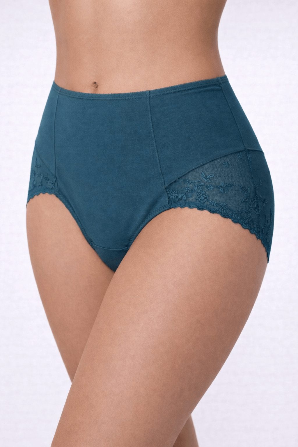 Piękne majtki wykonane z wysokogatunkowej wiskozy z wysokim stanem. Wykończone delikatnym tiulem o kwiatowym motywie. Figi nie odznaczają się pod ubraniem, dzięki bezszwowemu wykończeniu. Idealnie dopasowują się do kształtu ciała zapewniając wysoki komfort podczas noszenia.