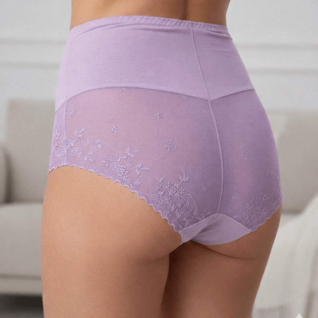 Piękne majtki wykonane z wysokogatunkowej wiskozy z wysokim stanem. Wykończone delikatnym tiulem o kwiatowym motywie. Figi nie odznaczają się pod ubraniem, dzięki bezszwowemu wykończeniu. Idealnie dopasowują się do kształtu ciała zapewniając wysoki komfort podczas noszenia.