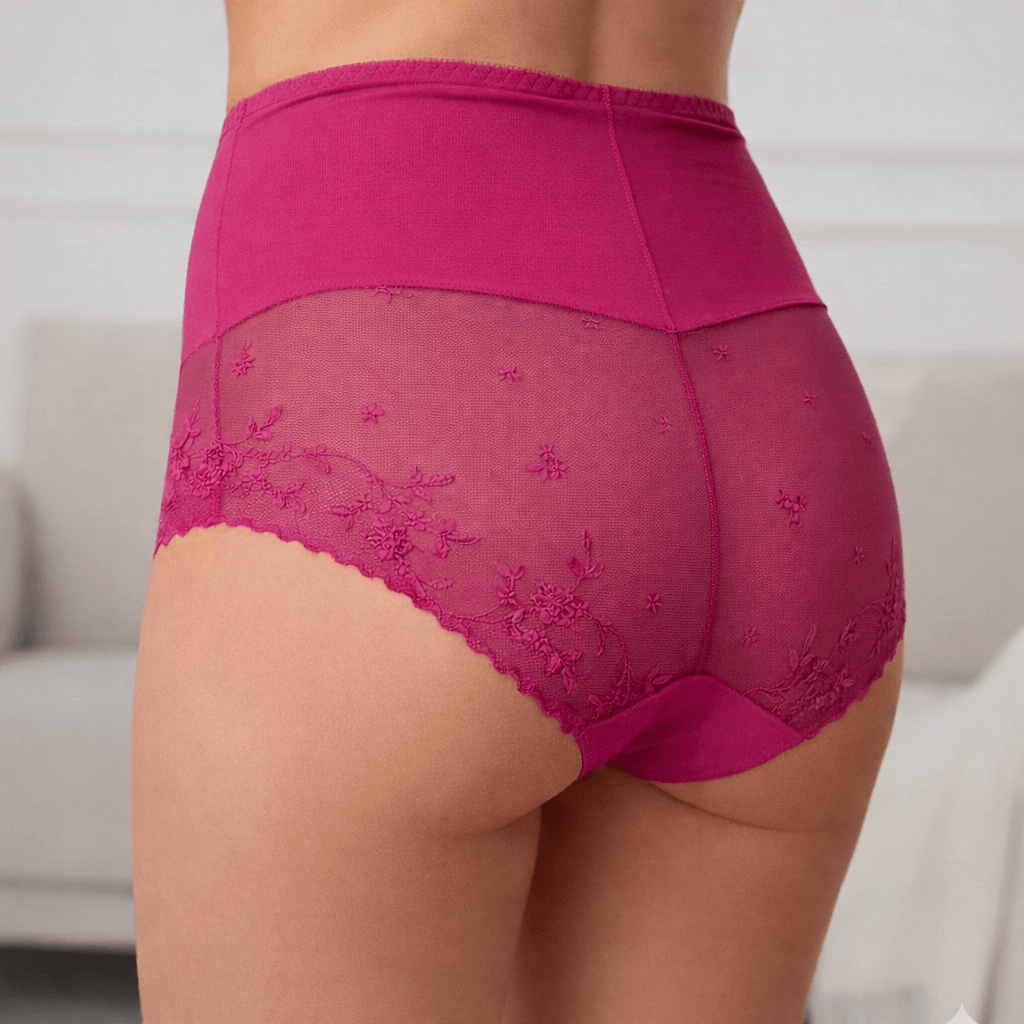Piękne majtki wykonane z wysokogatunkowej wiskozy z wysokim stanem. Wykończone delikatnym tiulem o kwiatowym motywie. Figi nie odznaczają się pod ubraniem, dzięki bezszwowemu wykończeniu. Idealnie dopasowują się do kształtu ciała zapewniając wysoki komfort podczas noszenia.