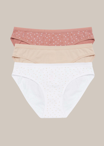 Figi damskie o klasycznym kroju oraz lekko zabudowanym boku. Pakowane po 3 sztuki w kolorze beżowy, ecru oraz ceglasty.