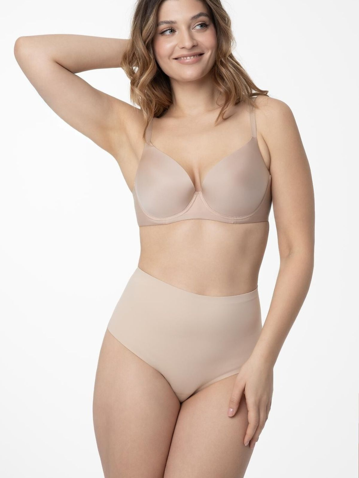 Figi damskie z kolekcji Control. Wysoka talia subtelnie kształtuje sylwetkę, a bezszwowa technologia Invisible-Line® sprawia, że bielizna pozostaje niewidoczna pod ubraniem. Wzmocniony siateczką przód zapewnia dodatkowe wsparcie, a brazylijski krój wydłuża optycznie nogi i zmysłowo podkreśla pośladki. Idealne dopasowanie gwarantuje pełen komfort przez cały dzień.