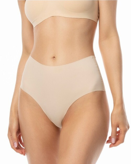 Wysokie figi damskie o pełnym kroju klejone po bokach. Cięte laserowo co sprawia, że są niewidoczne pod ubraniem. Doskonale przylegają do ciała.