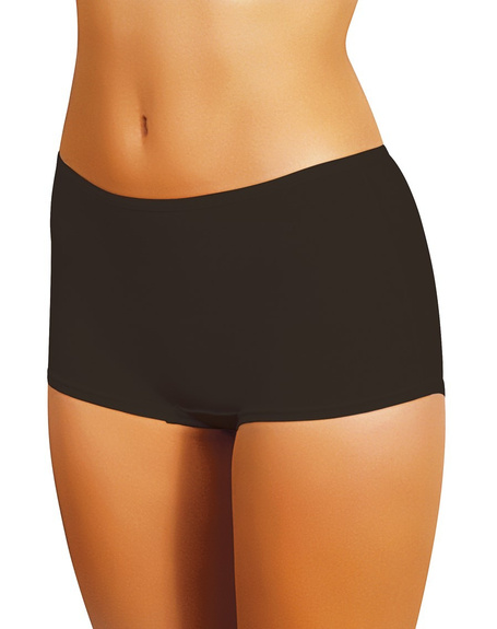 Szorty damskie wykonane z jednolitej bawełny w kolorze czarnym. Posiadają zabudowane biodra. Pakowane po 2 sztuki.