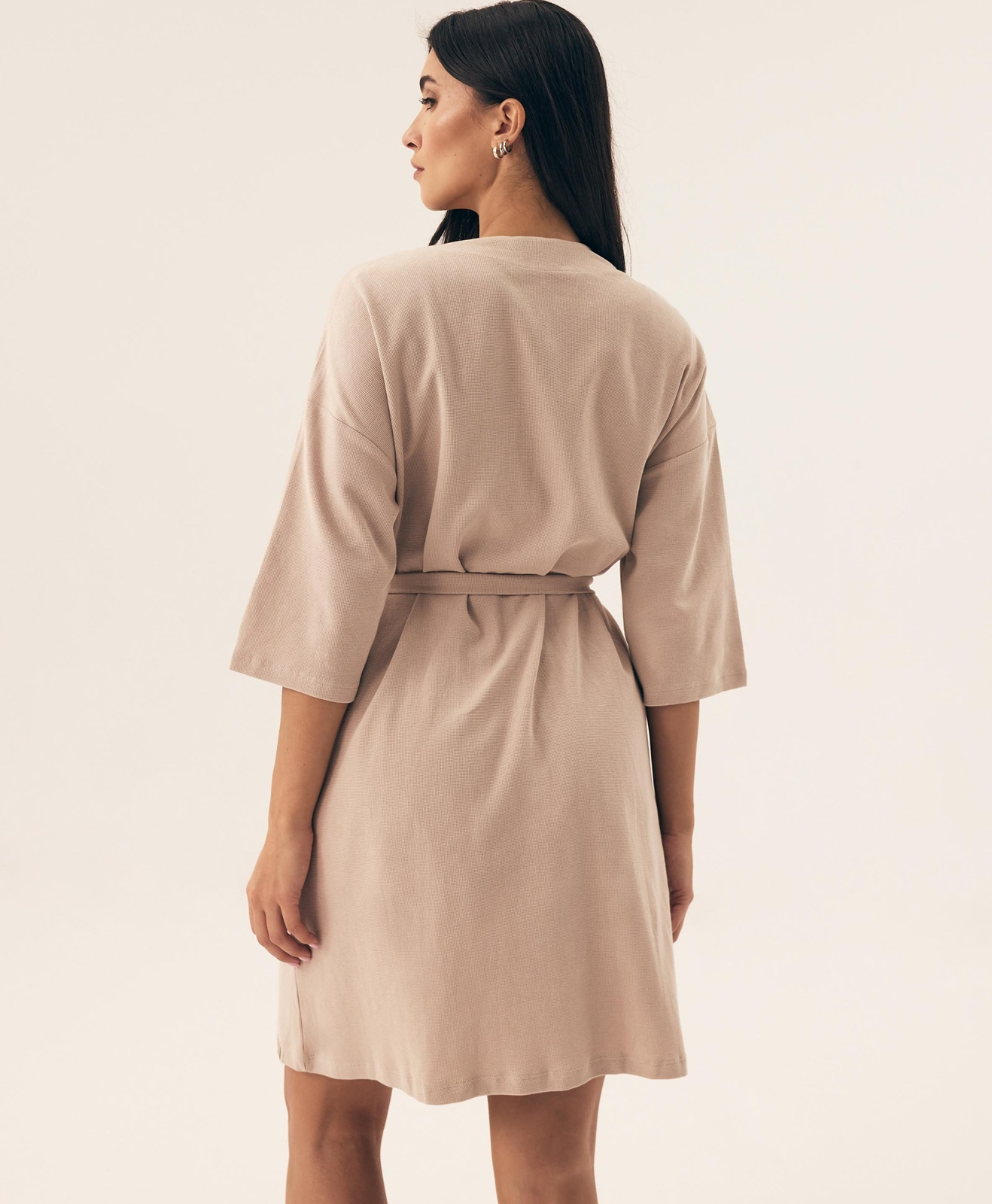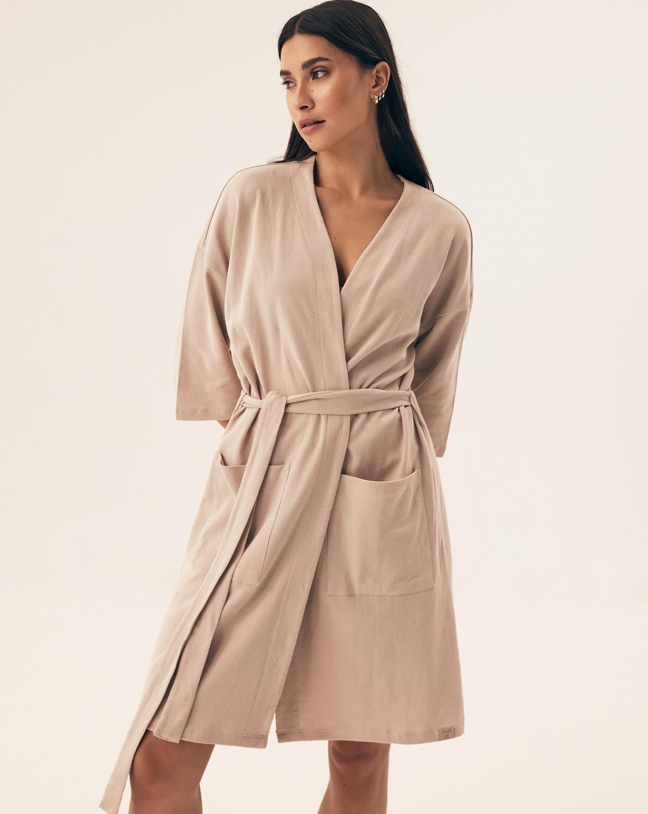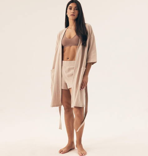 Elegancki i komfortowy szlafrok damski wykonany z wysokiej jakości bawełny o strukturze wafla. Posiada rękawy o długości 7/8 oraz wiązanie w talii, które podkreśla sylwetkę. Na wysokości bioder praktyczne kieszenie. Jego długość przed kolano zapewnia wygodę i swobodę ruchów.