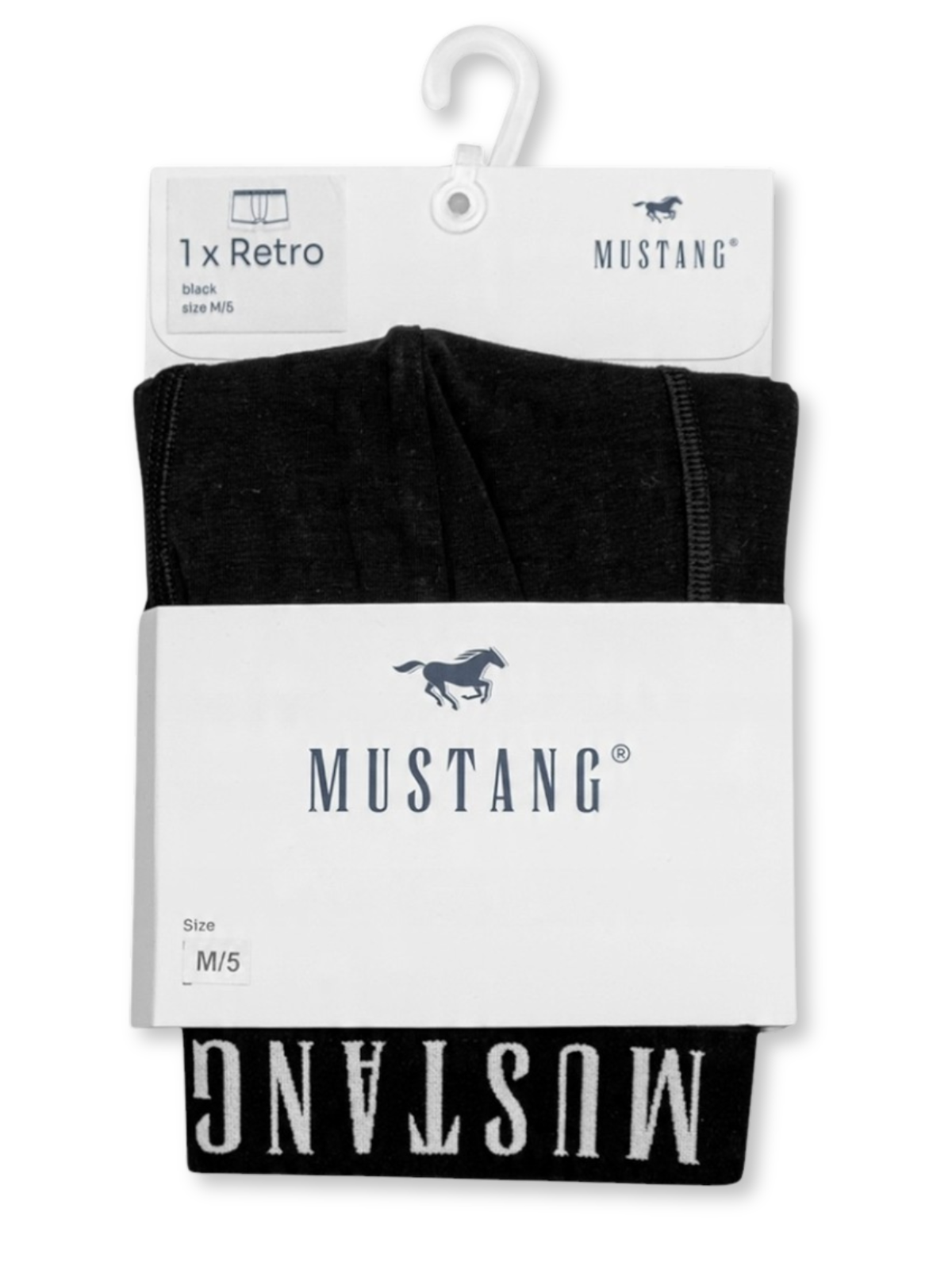 Męskie bokserki marki MUSTANG. Wykonane z wysokiej jakości bawełny z domieszką elastanu. Szeroka, elastyczna gumka w pasie z logo. Model w kolorze czarnym to uniwersalna propozycja na co dzień.