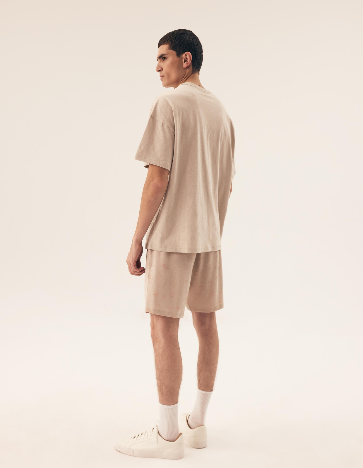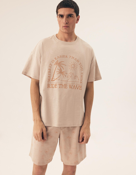 Piżama męska z krótkim rękawkiem i spodenkami. Wykonana z wysokiej jakości, przyjemnej dla ciała bawełny. Koszulka z okrągłym dekoltem i ozdobną grafiką.