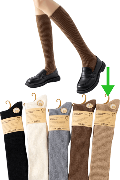 Kaszmirowe podkolanówki damskie wykonane z wysokiej jakości materiału. Komfortowe i ciepłe podczas noszenia.