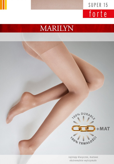 Rajstopy Marilyn "Super 15 Forte" to połączenie elegancji i niezawodnej trwałości. Uszyte z półprzezroczystej, matowej dzianiny o grubości 15 DEN, pięknie eksponują nogi, nadając im delikatny i naturalny charakter. Specjalne wzmocnienia sprawiają, że model ten wyróżnia się wysoką odpornością na uszkodzenia, dzięki czemu świetnie sprawdzi się w codziennym użytkowaniu. Komfort noszenia zapewniają płaskie szwy, a dodatkowe wzmocnienia w części majtkowej i na palcach zwiększają żywotność rajstop. To uniwersalny wybór, pasujący do różnych stylizacji, stworzony dla kobiet poszukujących klasy, wygody i trwałości.