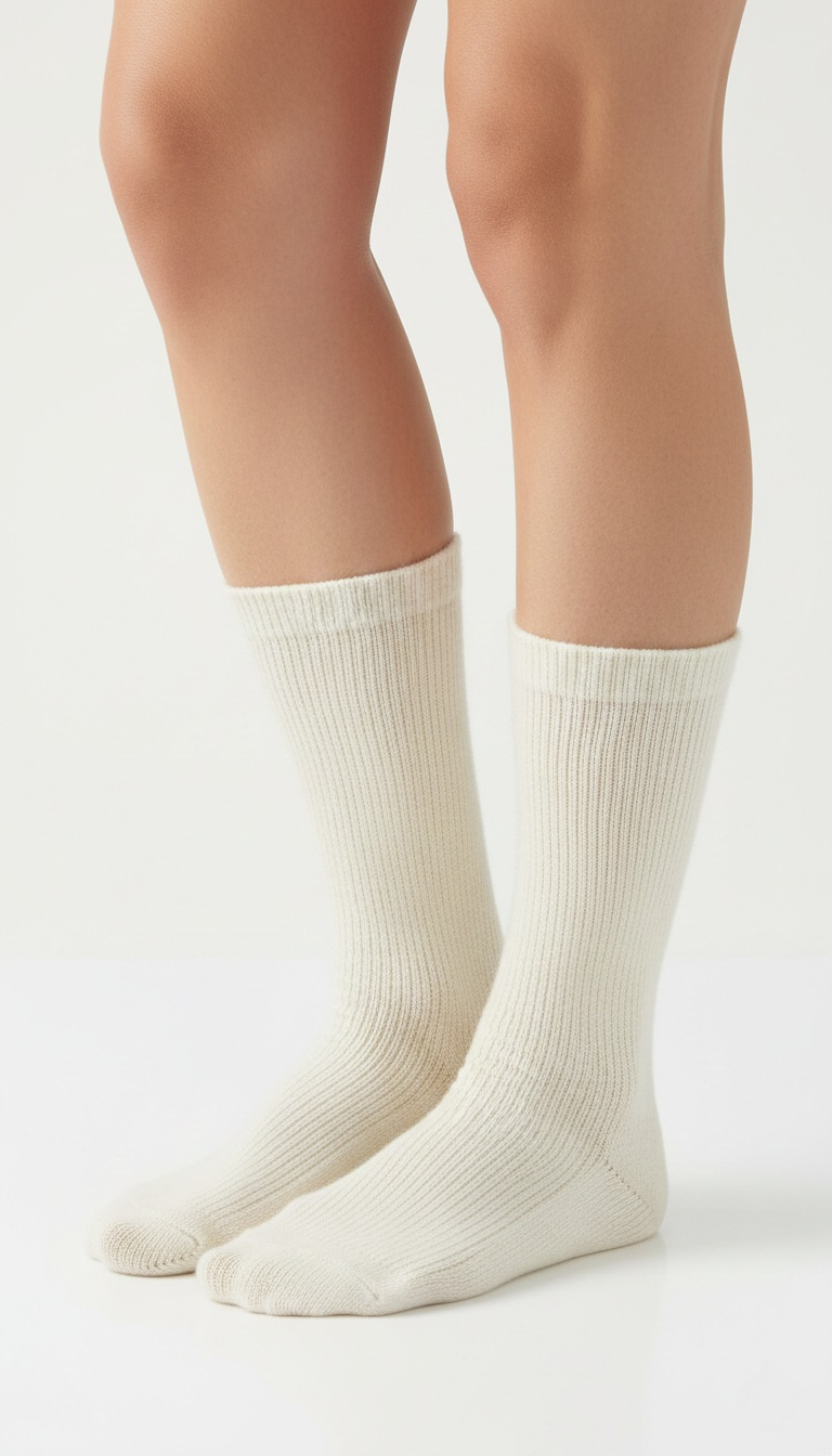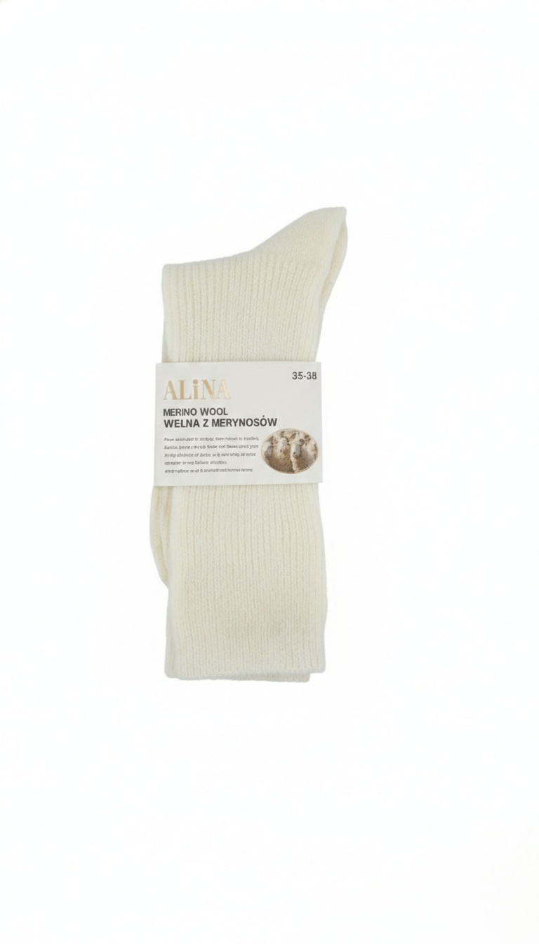 - Ciepłe i długie skarpetki damskie z wełny merynosów.
