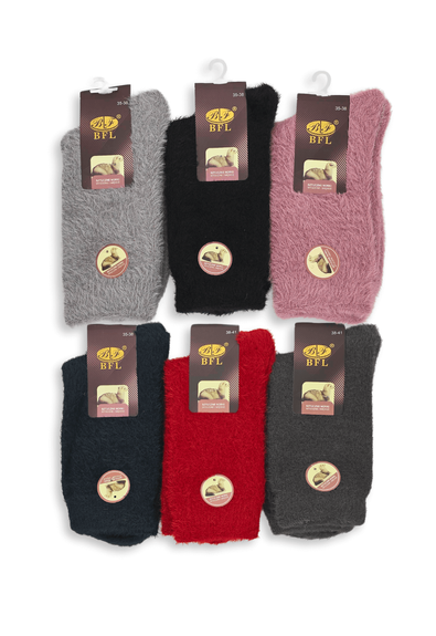 Damskie skarpetki wykonane ze sztucznego futra norki. Kolorowe ciepłe skarpetki wykonane z bardzo przyjemnego dla ciała materiału. Pakowane po 3szt. w różnych kolorach.