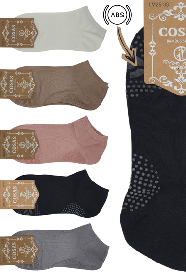 Damskie stopki z ABS-em w zestawie 5 par w różnych kolorach. Na stopie ABS do bezpiecznego użytkowania na śliskich, domowych nawierzchniach. Wykonane z przyjemnego dla ciała włókna bambusowego.