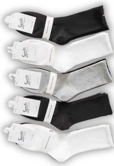Klasyczne, długie skarpetki damskie. Wykonane z wysokiej jakości bawełny. Pakowane po 5 par w kolorach, biały, szary i czarny.