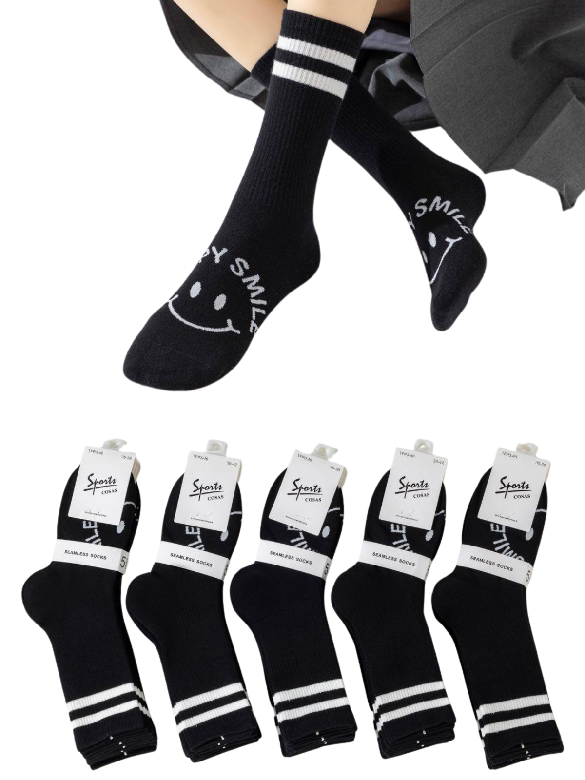 Klasyczne skarpetki damskie wykonane z wysokiej jakości bawełny. Skarpetki ozdobione wesołymi nadrukami. Pakowane po 5 par.