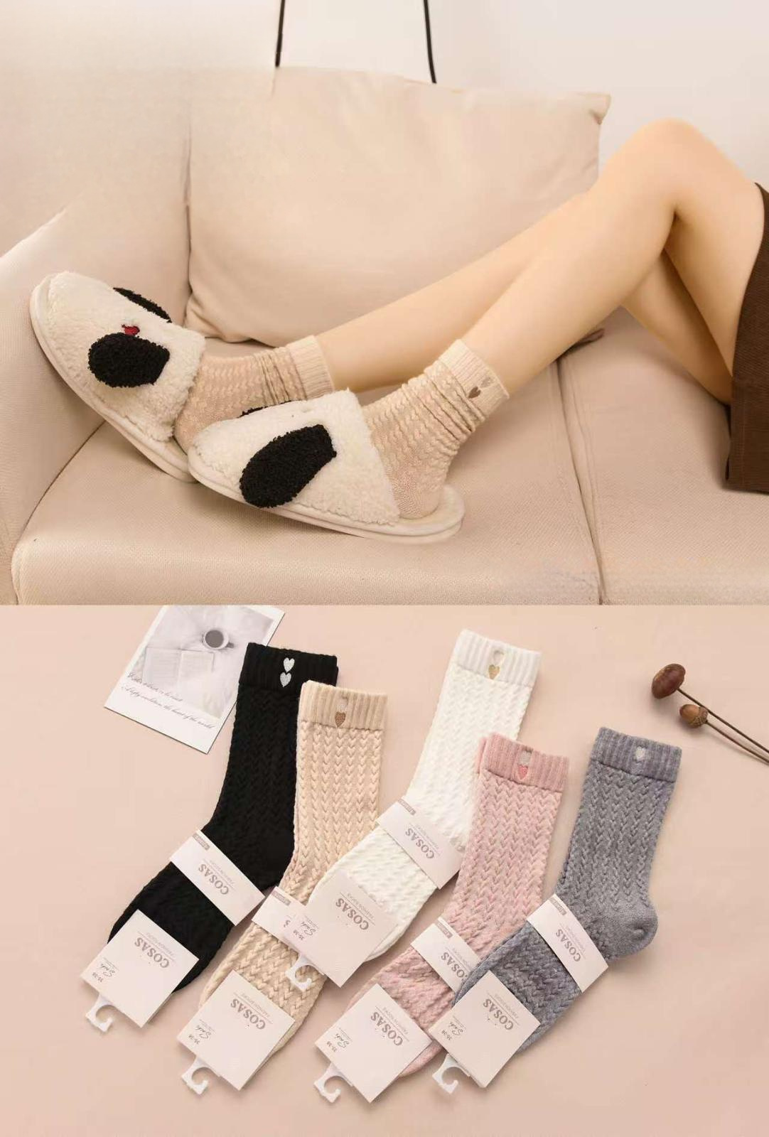Kaszmirowe skarpetki damskie jednokolorowe w serduszka. Pakowane po 4 pary.