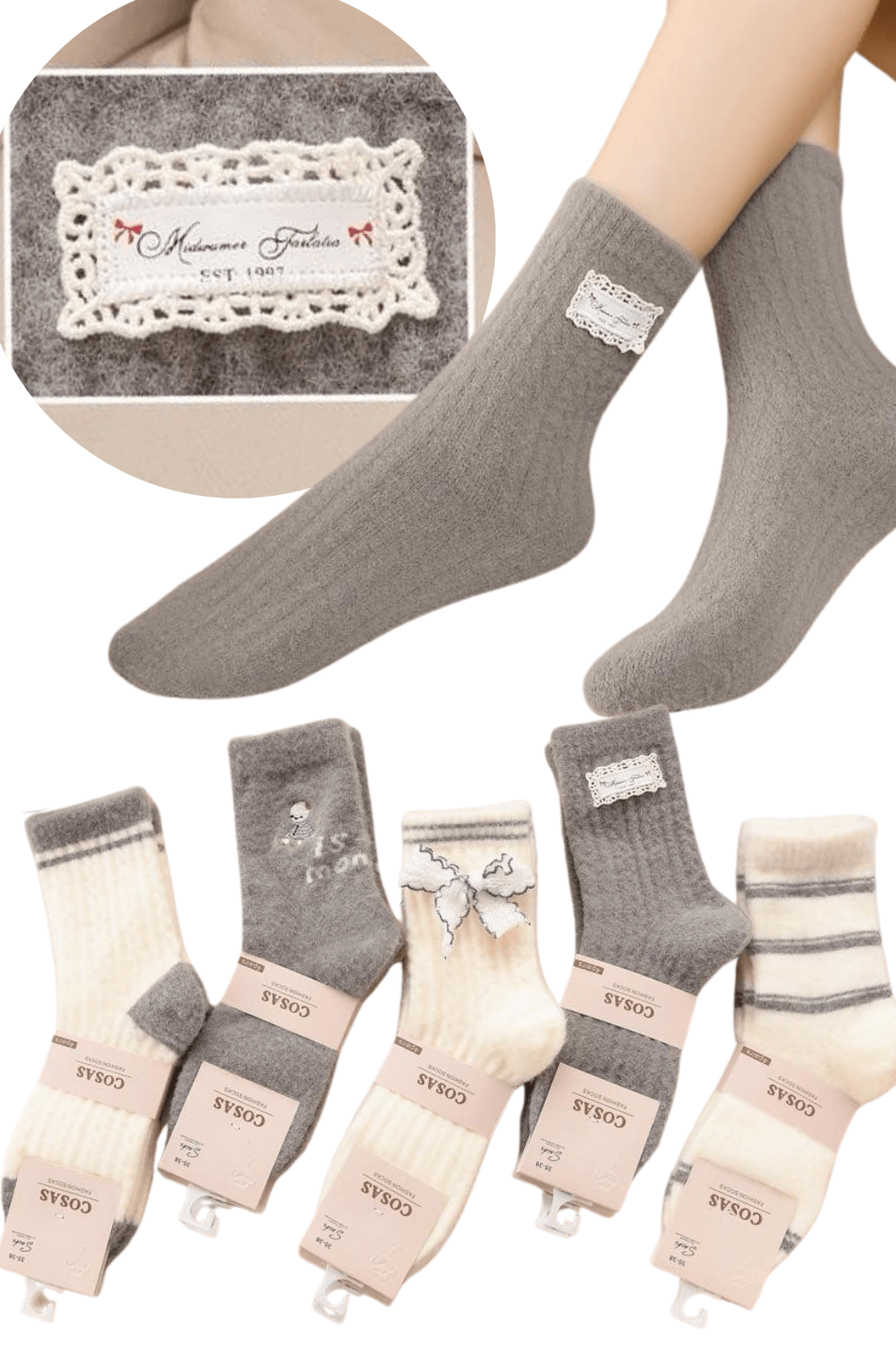 Skarpetki kaszmirowe damskie w stonowanych kolorach, mix wzorów, pakowane po 4 pary. Ciepłe i komfortowe.