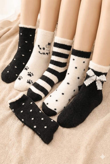 Wzorzyste i komfortowe skarpetki damskie kaszmirowe. Pakowane po 5 par mix wzorów.