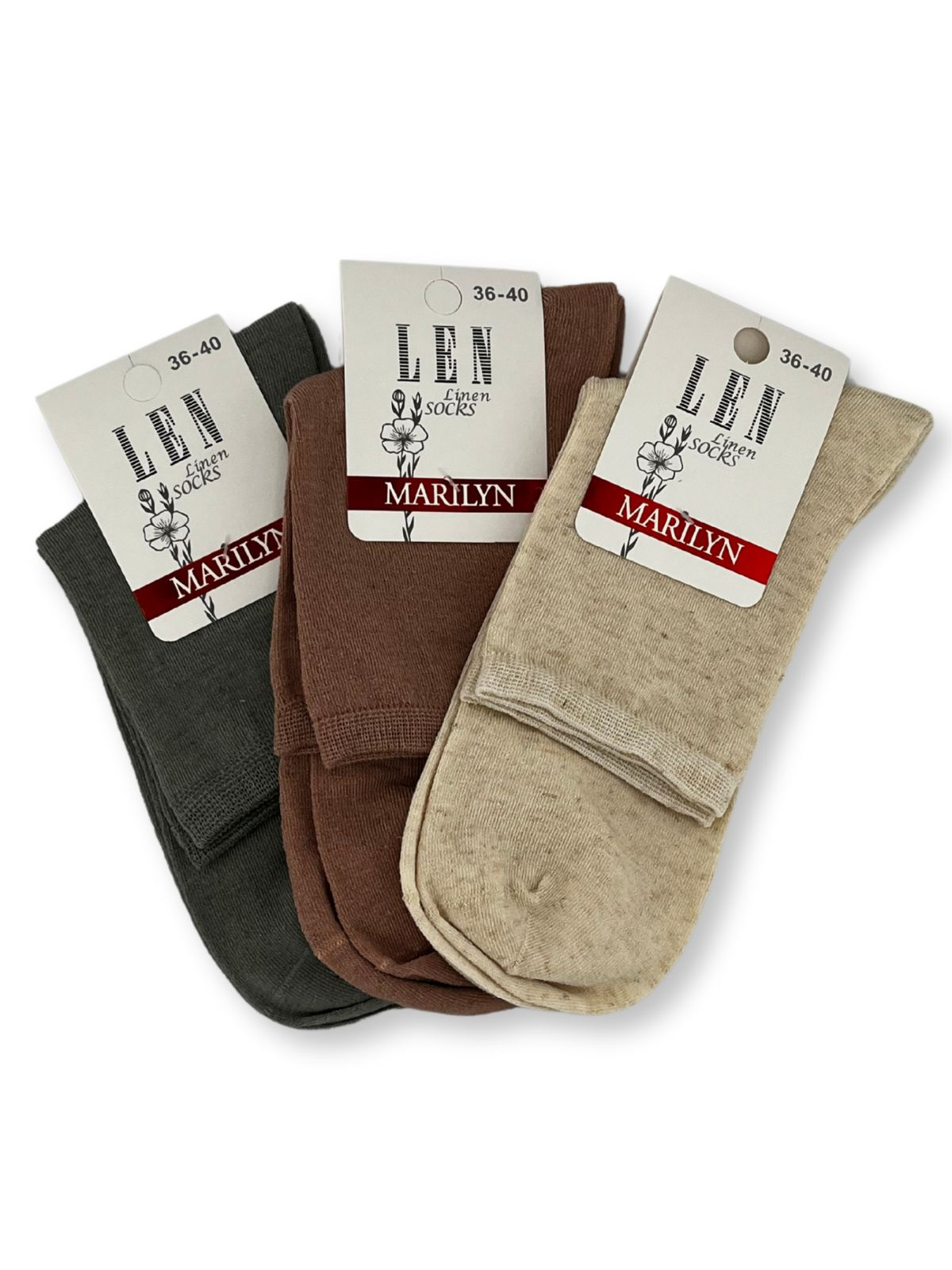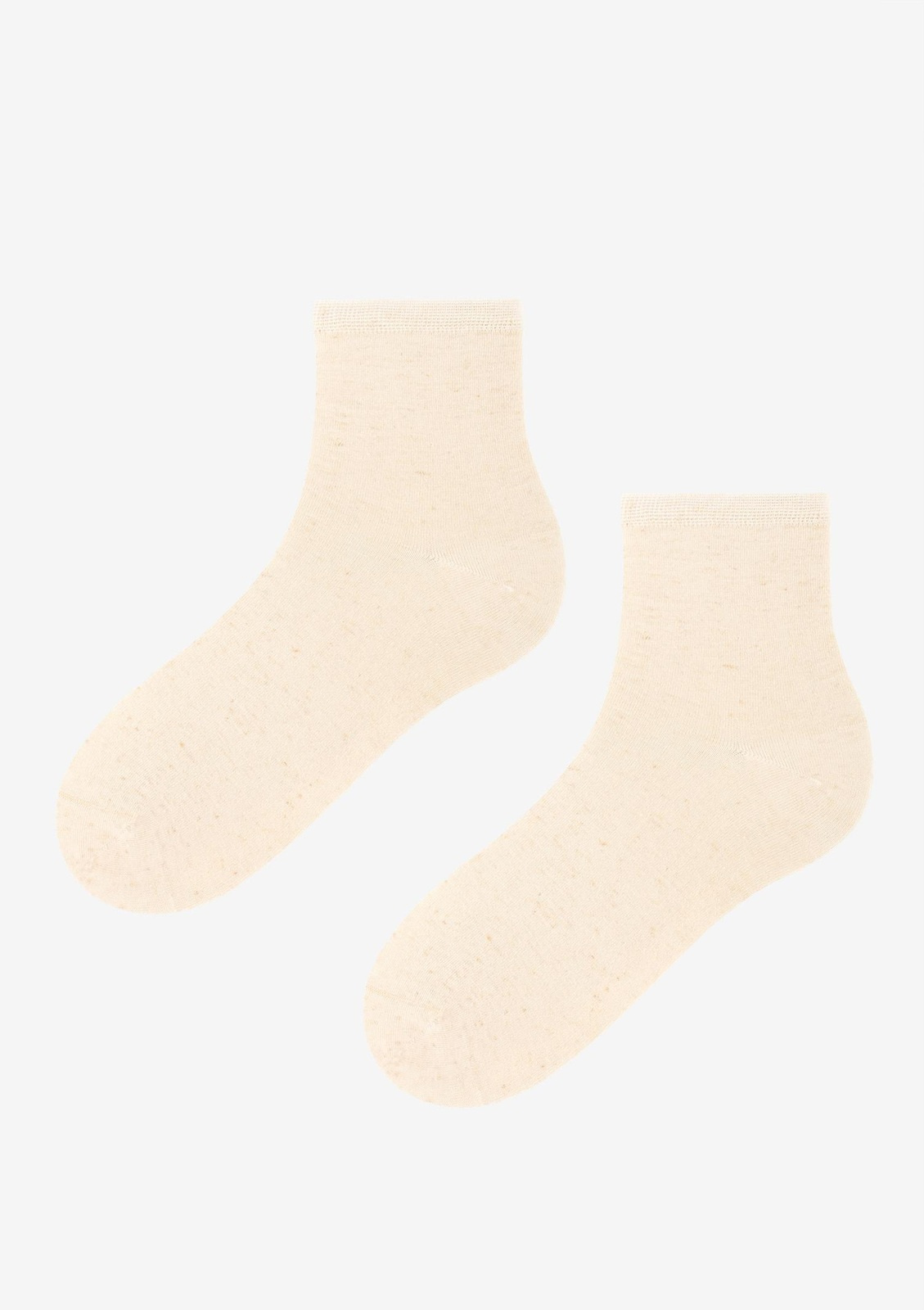 Komfortowe skarpetki damskie o klasycznej długości zakończone nieuciskającym ściągaczem. Wykonane z wysokogatunkowych materiałów wiskozy i lnu. Pakowane pojedynczo. Kolor naturalny.