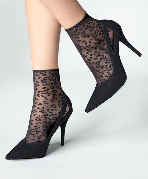 Cienkie, wzorzyste skarpetki damskie. W kolorze czarnym. Elastyczne, przylegające do stopy. Zapobiegające obtarciom.
