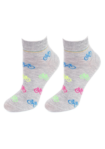 Niskie skarpetki damskie w kolorowe rowery. Wykonane z naturalnej bawełny najwyższej jakości. Płaski i miękki szew zapewni komfort noszenia.