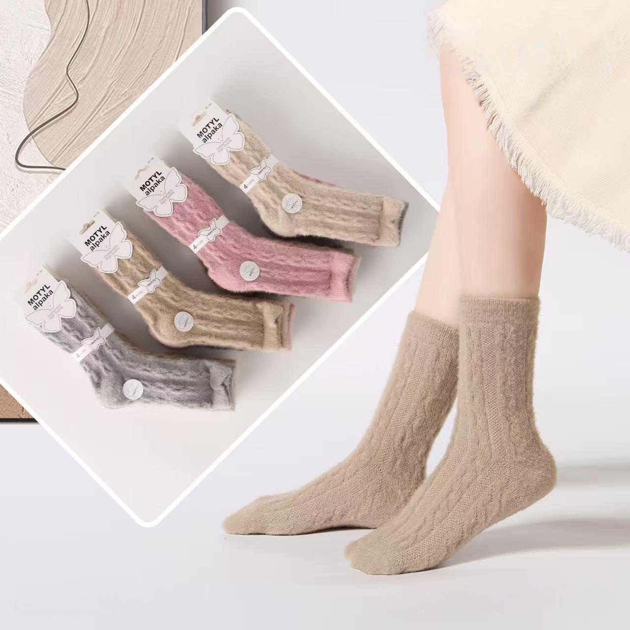 Damskie skarpetki wełniane. Ciepłe i komfortowe. Mix kolorów, pakowane po 4 pary.