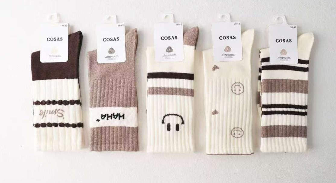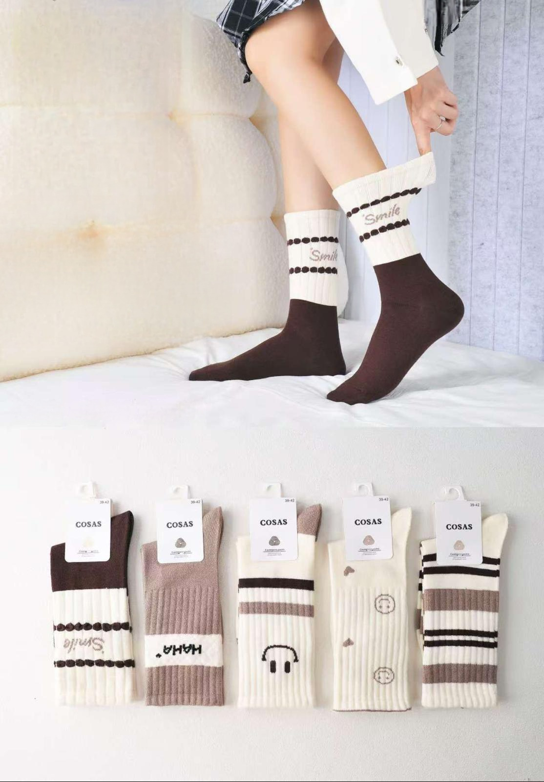 Damskie skarpetki kaszmirowe z ozdobnymi napisami. Pakowane po 4 pary.