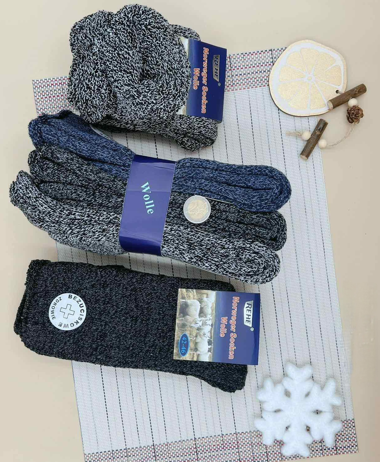 Męskie skarpetki wełniane bezuciskowe. Komfortowe i ciepłe, idealne na chłodne dni. Pakowane po 3 pary.