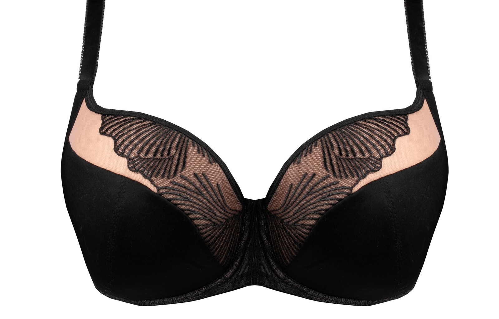 Gustowny biustonosz, który łącze wygodę z funkcjonalnością. Model zachwyca połączeniem gładkiego materiału z subtelnym, geometrycznym haftem na górnej części miseczek oraz mostku. Stabilne fiszbiny zapewniają idealne zebranie biustu. Regulowane, nie odpinane ramiączka.